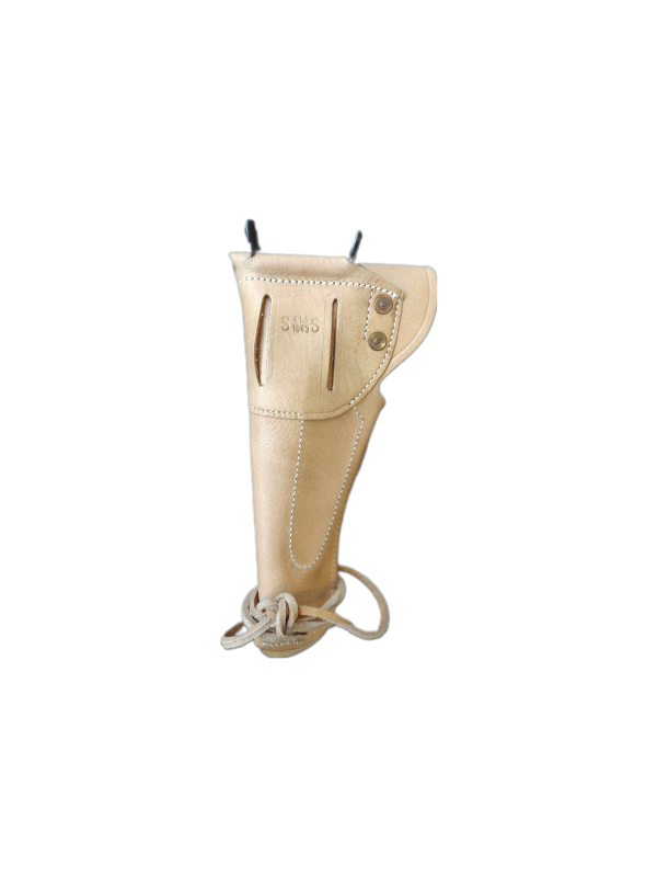 Reproduction of the WWII issue leather belt holster for the Colt M1911 .45 pistol.